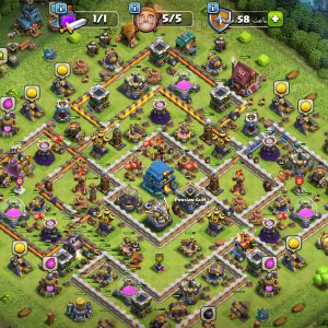 کلش اف کلنز لول۶۶ با همراه توپ خار دار به همراه قبیله